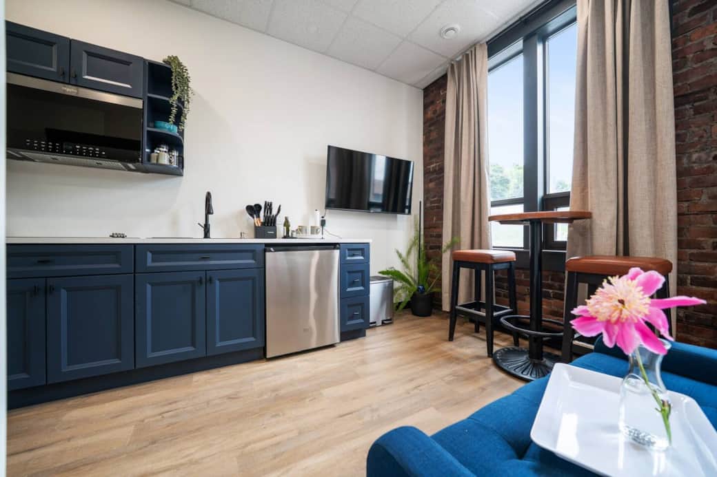 Welcome to The Blue Room @ The MillRows Suites! A compact, thoughtfully designed studio in downtown New Glasgow. Styled with calming blue accents and clever use of space, this suite is ideal for solo travelers or couples looking for a simple, comfortable stay. Enjoy a fully equipped kitchenette, 55" Smart TV, and walkable access to shops, restaurants, and the waterfront. Whether you're here for work or rest, this bright little retreat has everything you need — and nothing you don’t.
